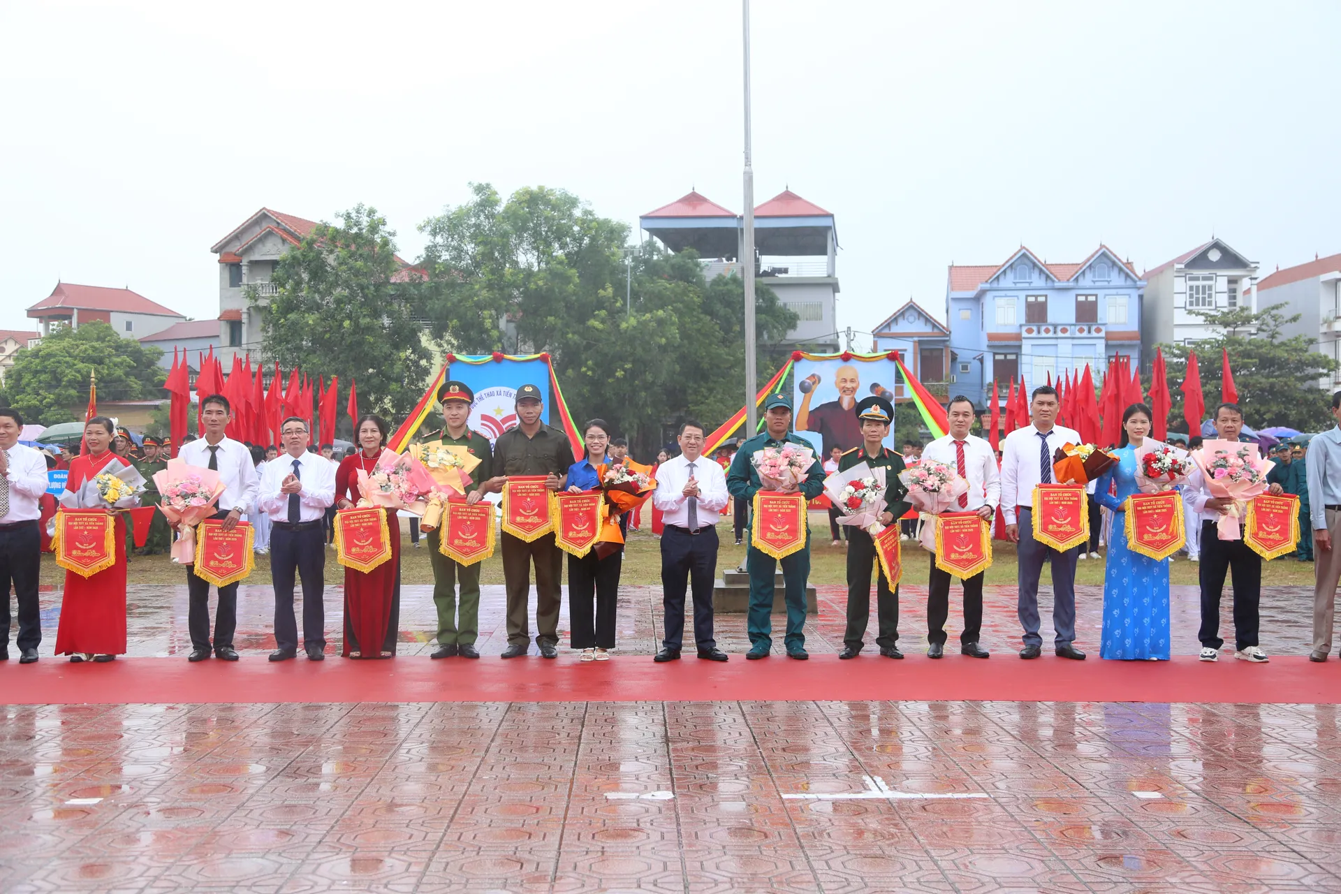 Lãnh đạo xã Tiến Thắng tặng Cờ lưu niệm, hoa cho các đoàn dự Đại hội
