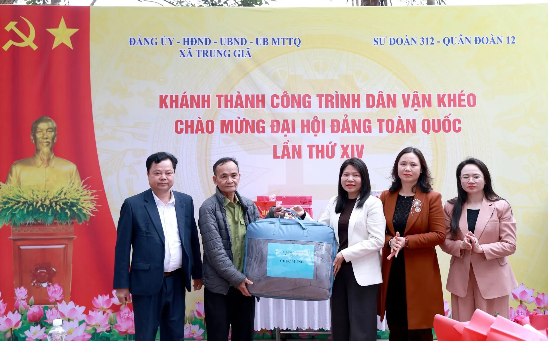 Kinhteodothi - Xã Trung Giã vừa phối hợp với Sư đoàn 312 (Quân đoàn 12) tổ chức Lễ khánh thành, gắn biển công trình “Dân vận khéo” chào mừng Đại hội đại biểu toàn quốc lần thứ XIV của Đảng tại gia đình ông Trịnh Văn Khoá (thôn Xuân Sơn).