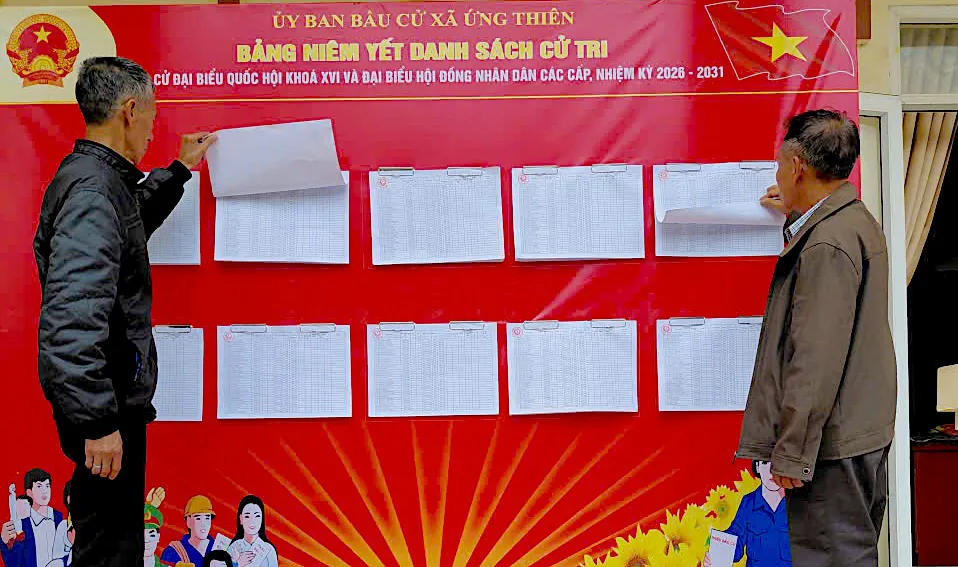 Người dân theo dõi thông tin trên bảng niêm yết danh sách cử tri phục vụ cuộc bầu cử đại biểu Quốc hội khóa XVI và đại biểu HĐND các cấp nhiệm kỳ 2026 – 2031.
