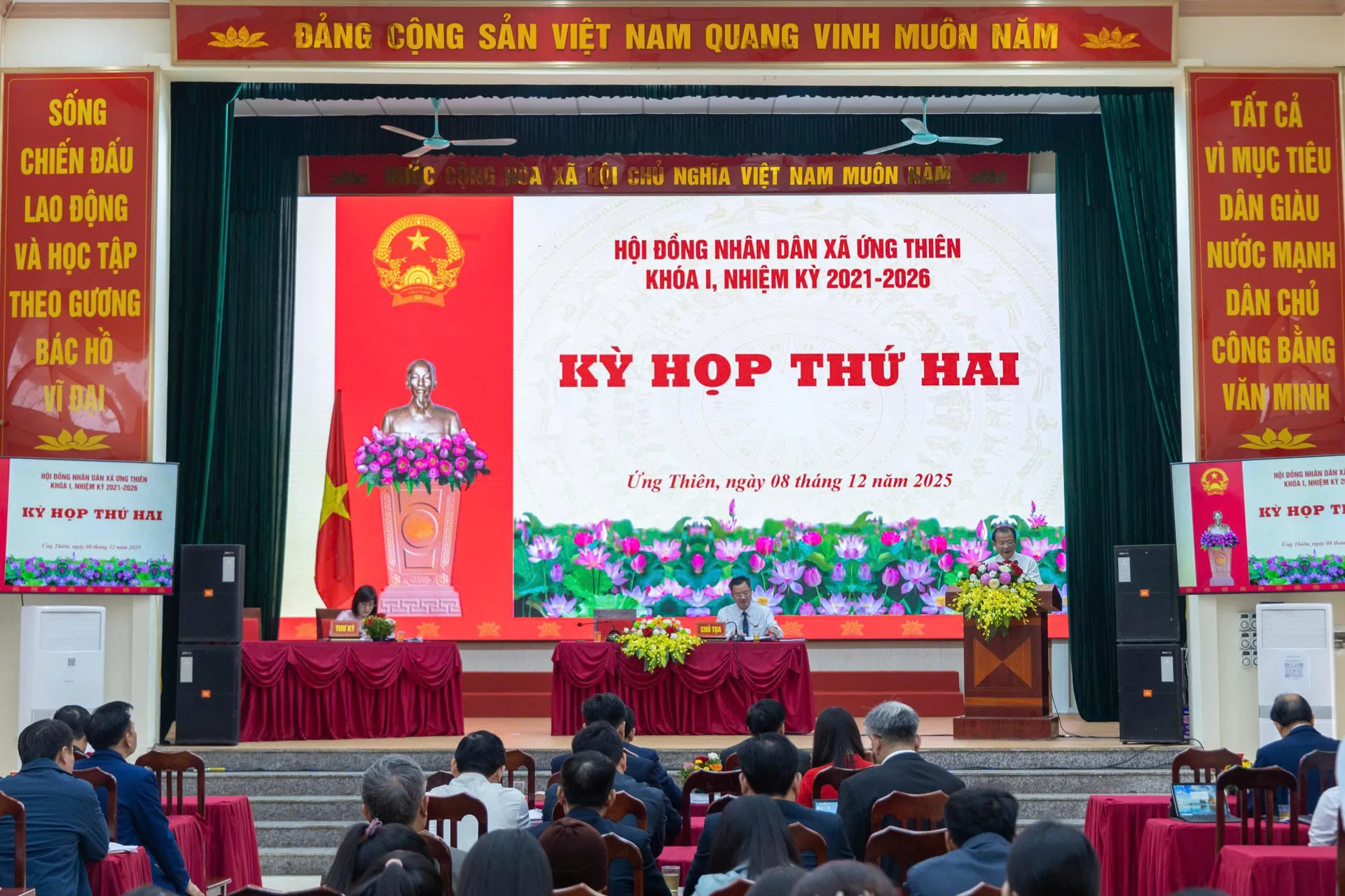 Kỳ họp thứ hai, HĐND xã Ứng Thiên khóa I, nhiệm kỳ 2021 - 2026 triển khai các nội dung theo chương trình đề ra, tạo cơ sở quan trọng để UBND xã triển khai hiệu quả nhiệm vụ năm 2026, giai đoạn 2026 - 2030, hướng tới mục tiêu phát triển bền vững, nâng cao đời sống Nhân dân và xây dựng chính quyền phục vụ, chuyên nghiệp, hiện đại góp phần xây dựng xã Ứng Thiên ngày càng giàu đẹp, văn minh và phát triển.