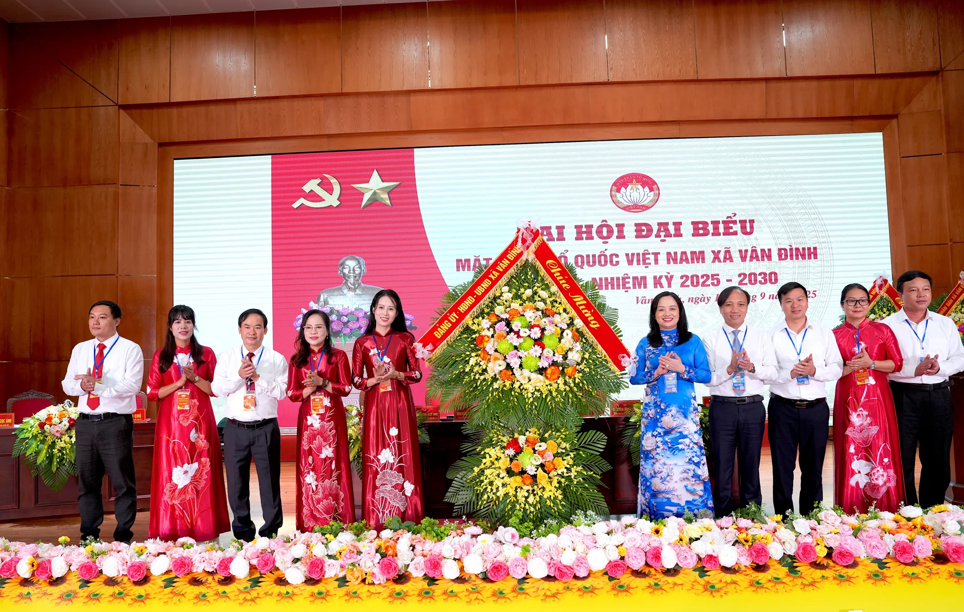 Đoàn Chủ tịch Đại hội đại biểu MTTQ Việt Nam xã Vân Đình lần thứ nhất, nhiệm kỳ 2025 - 2030. Ảnh: Lại Tấn