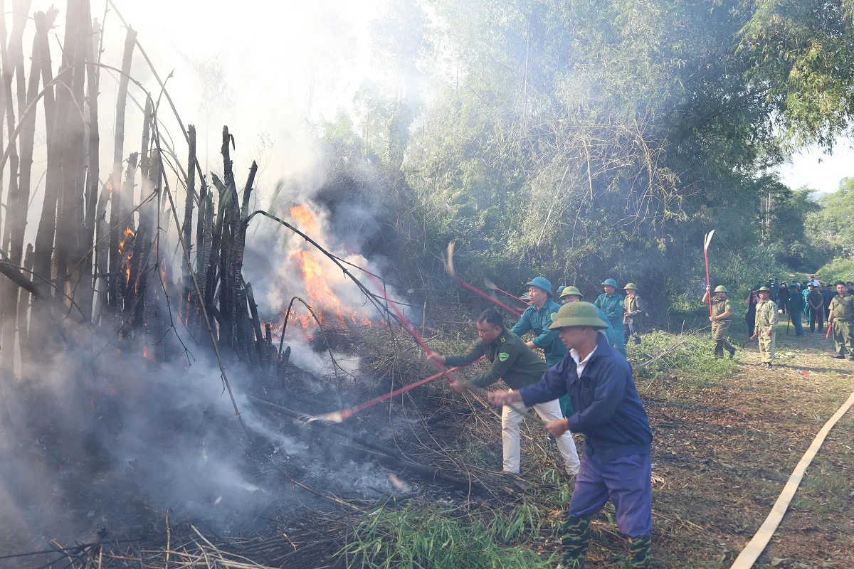 Nhận được tin báo cháy rừng, Hạt Kiểm lâm số 8 đã huy động lực lượng, phương tiện và trang thiết bị chữa cháy đến hiện trường, phối hợp dập lửa từ ba phía, tránh đầu hướng gió, cắt đường băng cản lửa… Sau hơn 60 phút hiệp đồng giữa các lực lượng, đám cháy giả định được khống chế hoàn toàn.
