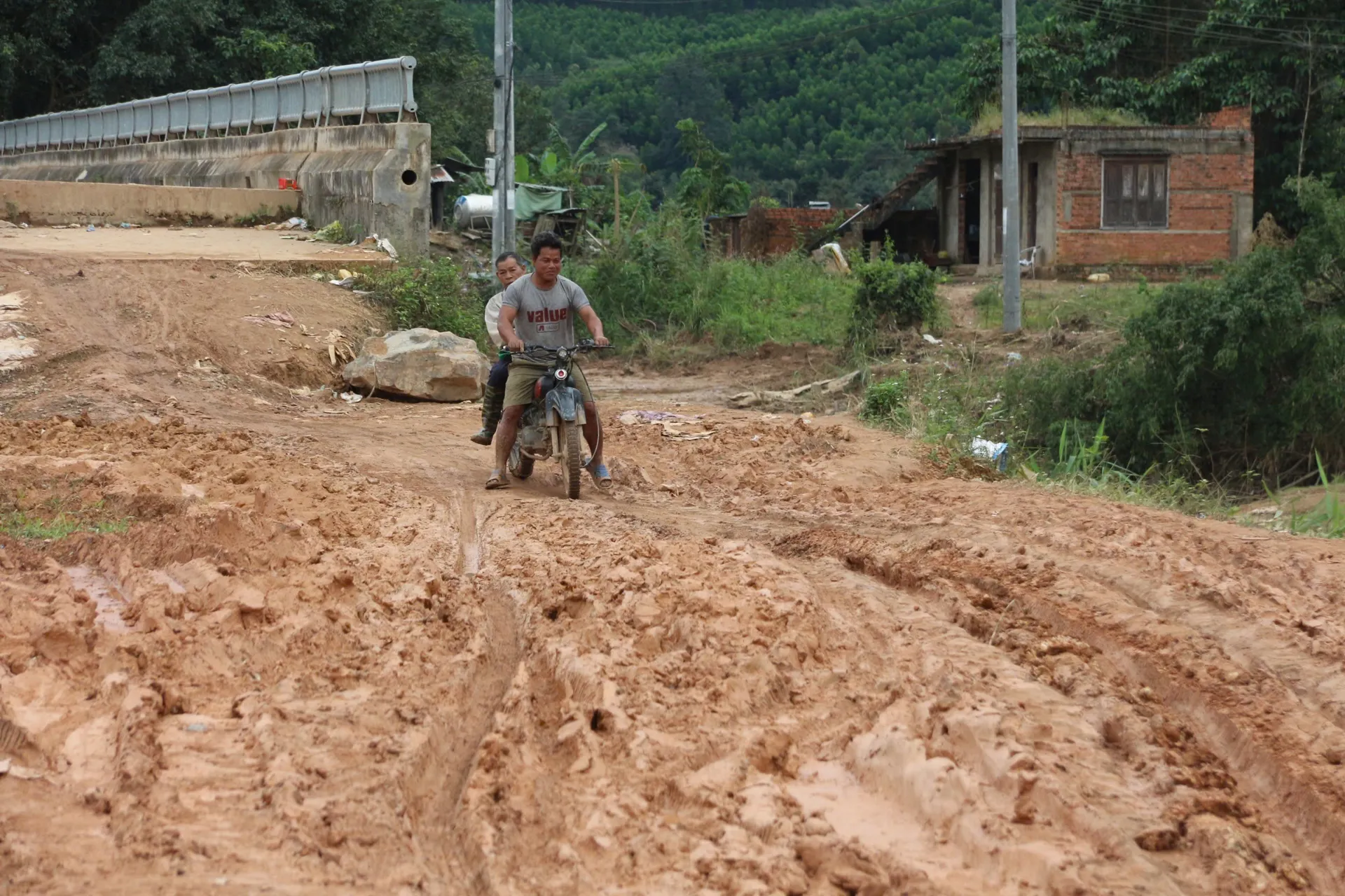 Con đường khó khăn, nhầy nhụa sau lũ.