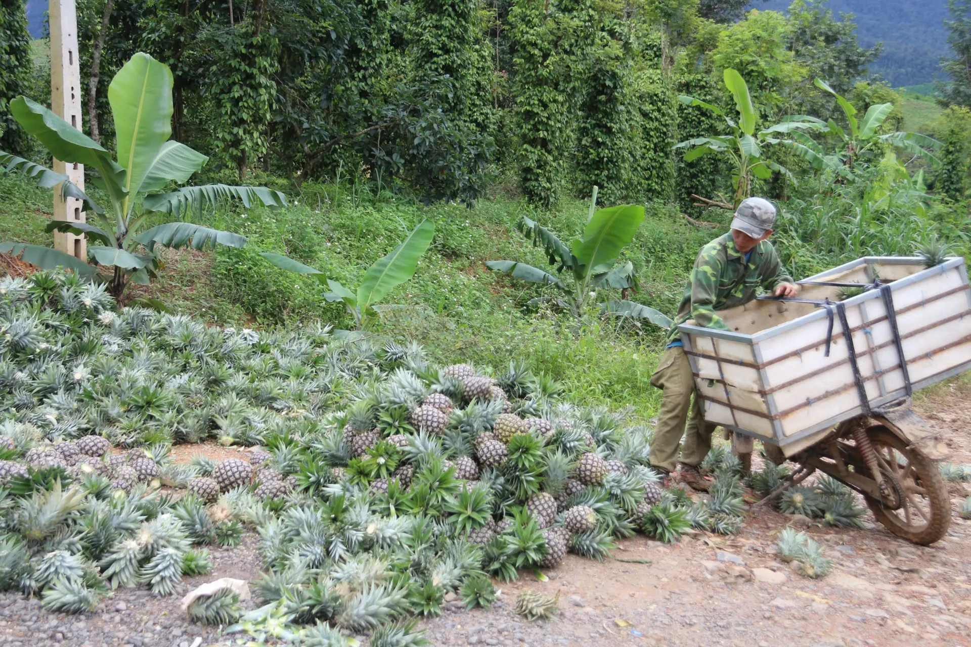 Khắp các thôn làng, bà con cũng tranh thủ lên rẫy nhặt từng hạt cà phê rụng, gom góp bán cho thương lái để có chút thu nhập. Người trồng dứa cũng tất bật thu hoạch cho kịp mùa.