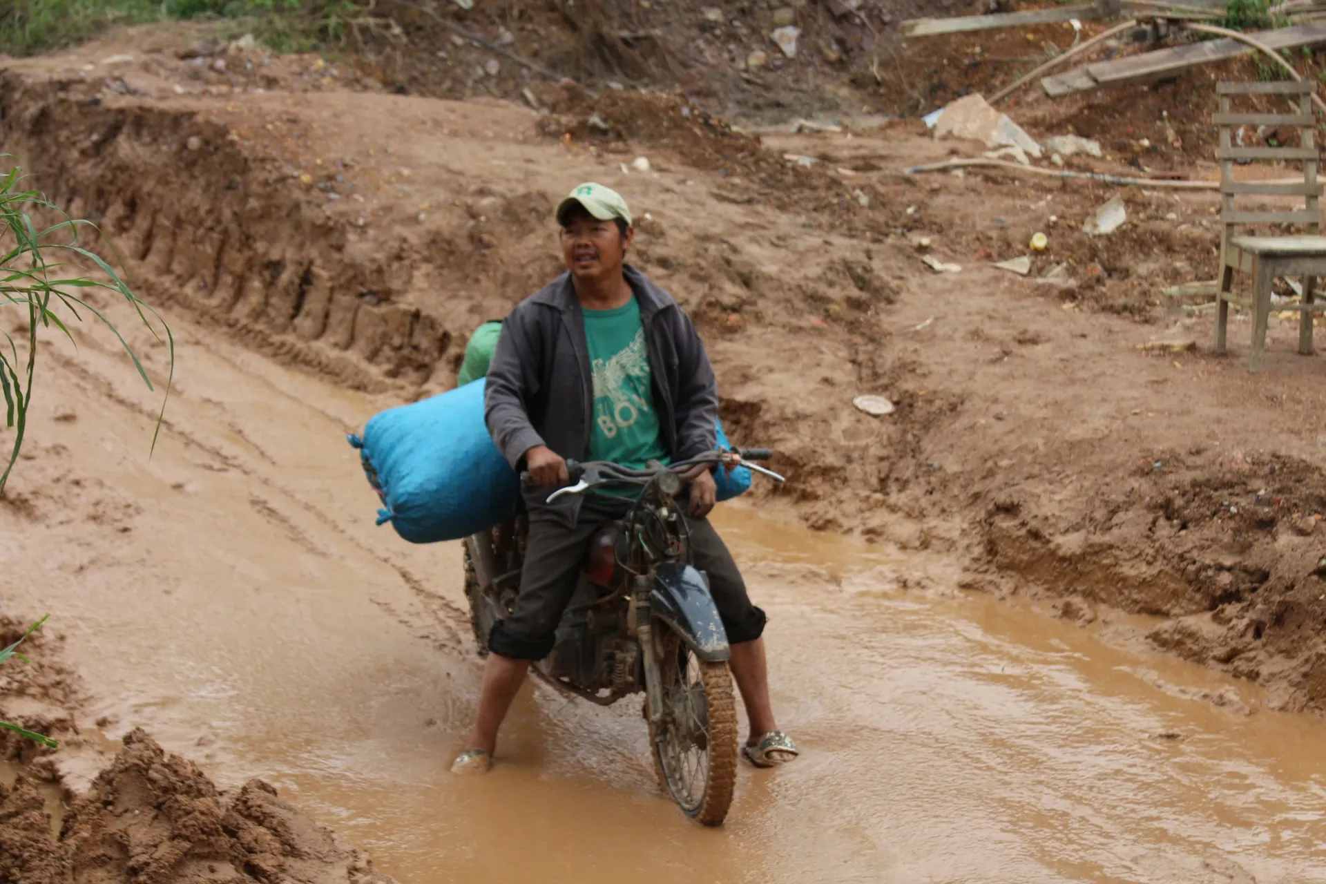 Nông sản sau thu hoạch phải chở ra ngoài bằng xe máy.
