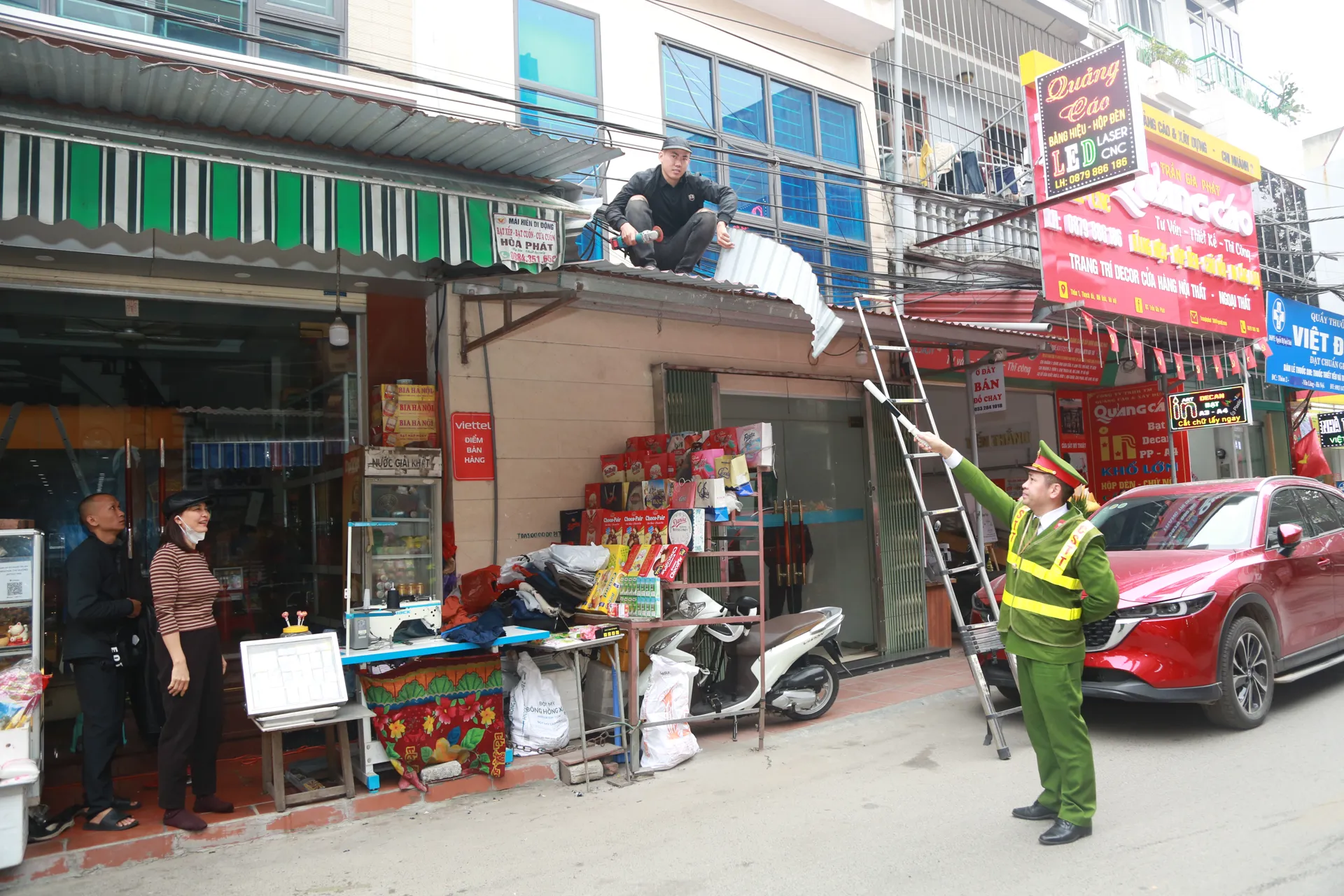 Công an xã Yên Lãng tuyên truyền nhắc nhở các hộ kinh doanh trên tuyến đường vào chợ Thạch Đà