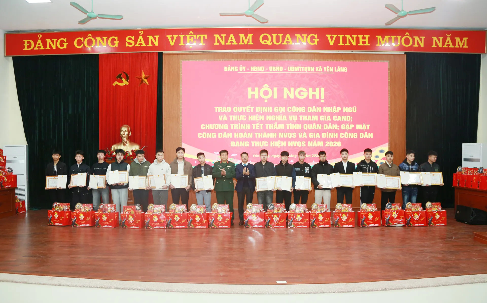 Kinhtedothi - Ngày 8/2, Đảng ủy – HĐND – UBND - Ủy ban MTTQ Việt Nam xã long trọng tổ chức Hội nghị trao Quyết định gọi công dân nhập ngũ, tham gia nghĩa vụ công an Nhân dân, chương trình "Tết thắm tình quân dân" và gặp gỡ công dân hoàn thành nghĩa vụ quân sự trở về địa phương, các gia đình có quân nhân đang thực hiện nghĩa vụ quân sự năm 2026. Đây là hoạt động thiết thực chào mừng thành công của Đại hội Đảng toàn quốc lần thứ 14, hướng tới cuộc bầu cử đại biểu Quốc hội, bầu cử HĐND các cấp nhiệm kỳ 2026-2031 và chuẩn bị đón xuân mới Bính Ngọ.