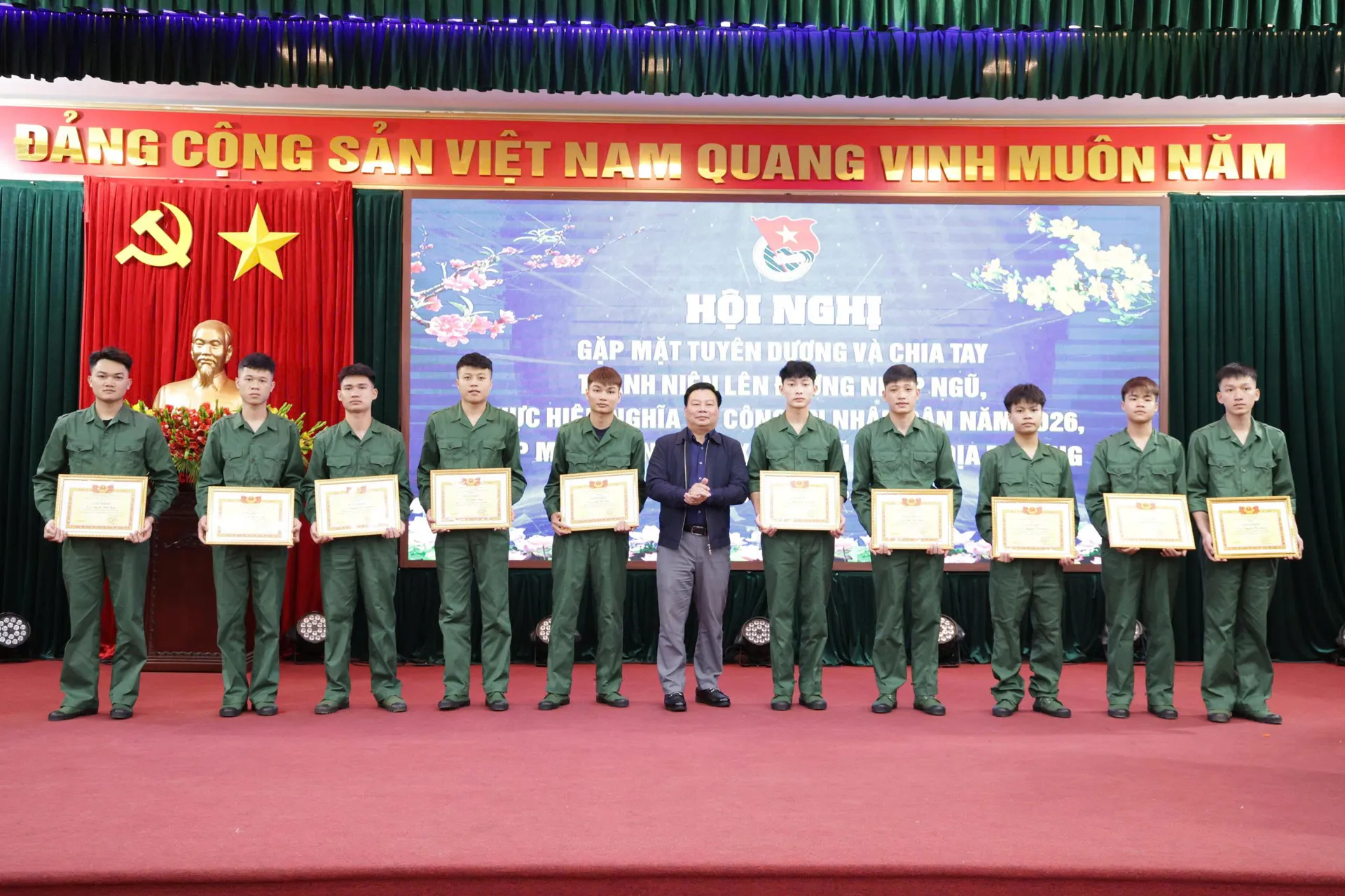 Kinhtedothi - Ngày 26/2, Đoàn thanh niên cộng sản Hồ Chí Minh xã Yên Xuân phối hợp với Hội đồng nghĩa vụ quân sự xã Yên Xuân tổ chức Hội nghị gặp mặt tuyên dương và chia tay thanh niên lên đường nhập ngũ, thực hiện nghĩa vụ Công an Nhân dân năm 2026 và gặp mặt quân nhân xuất ngũ trở về địa phương.