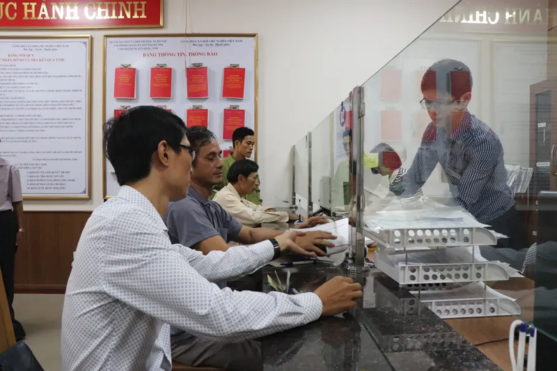 | Người dân làm thủ tục tại Bộ phận tiếp nhận và trả kết quả thủ tục hành chính Một cửa huyện Đông Anh. |