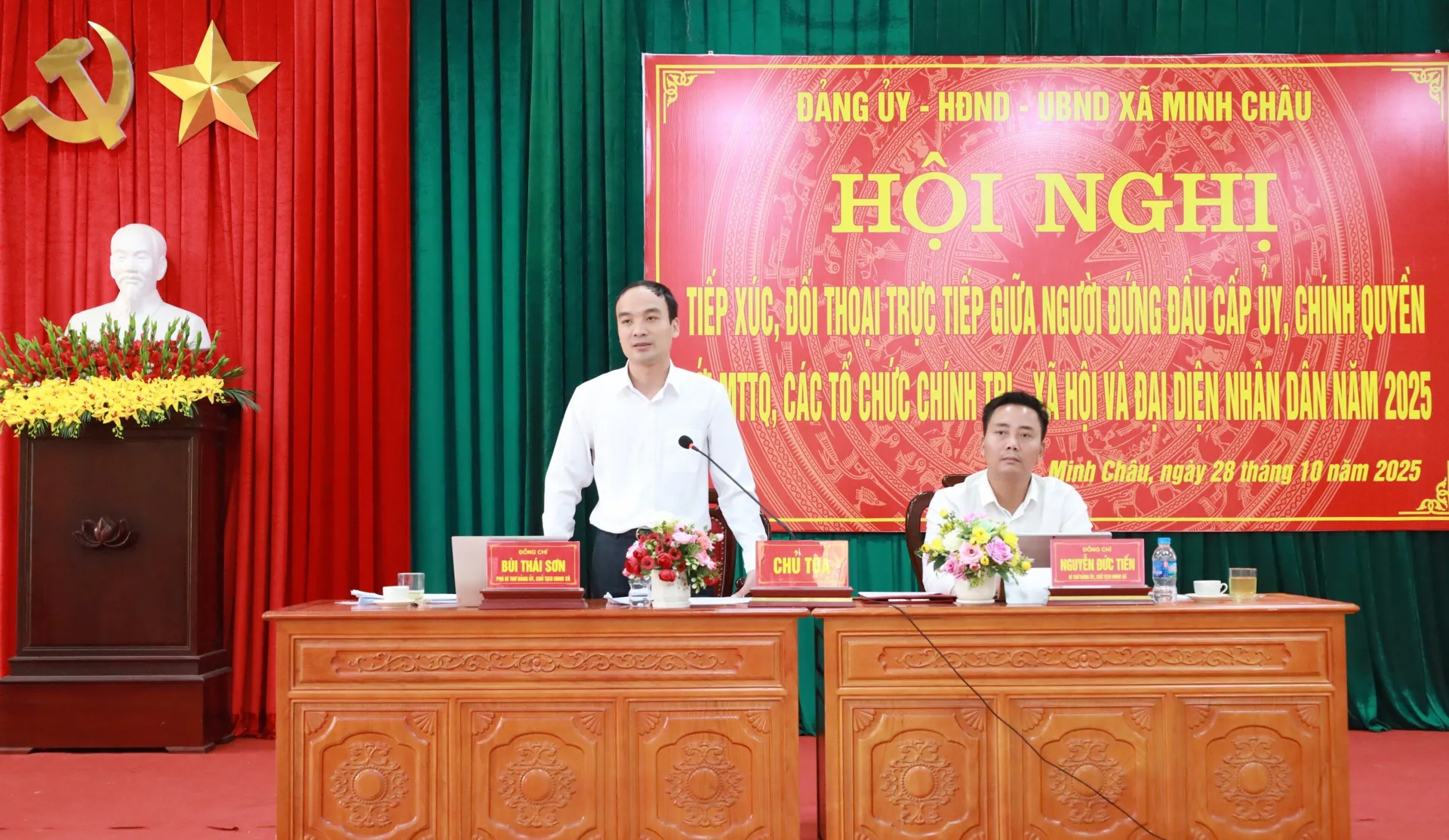 Kinhtedothi - Ngày 28/10, Đảng ủy – HĐND – UBND xã Minh Châu tổ chức Hội nghị tiếp xúc, đối thoại trực tiếp giữa người đứng đầu cấp ủy, chính quyền với MTTQ, các tổ chức chính trị – xã hội và đại diện Nhân dân năm 2025.