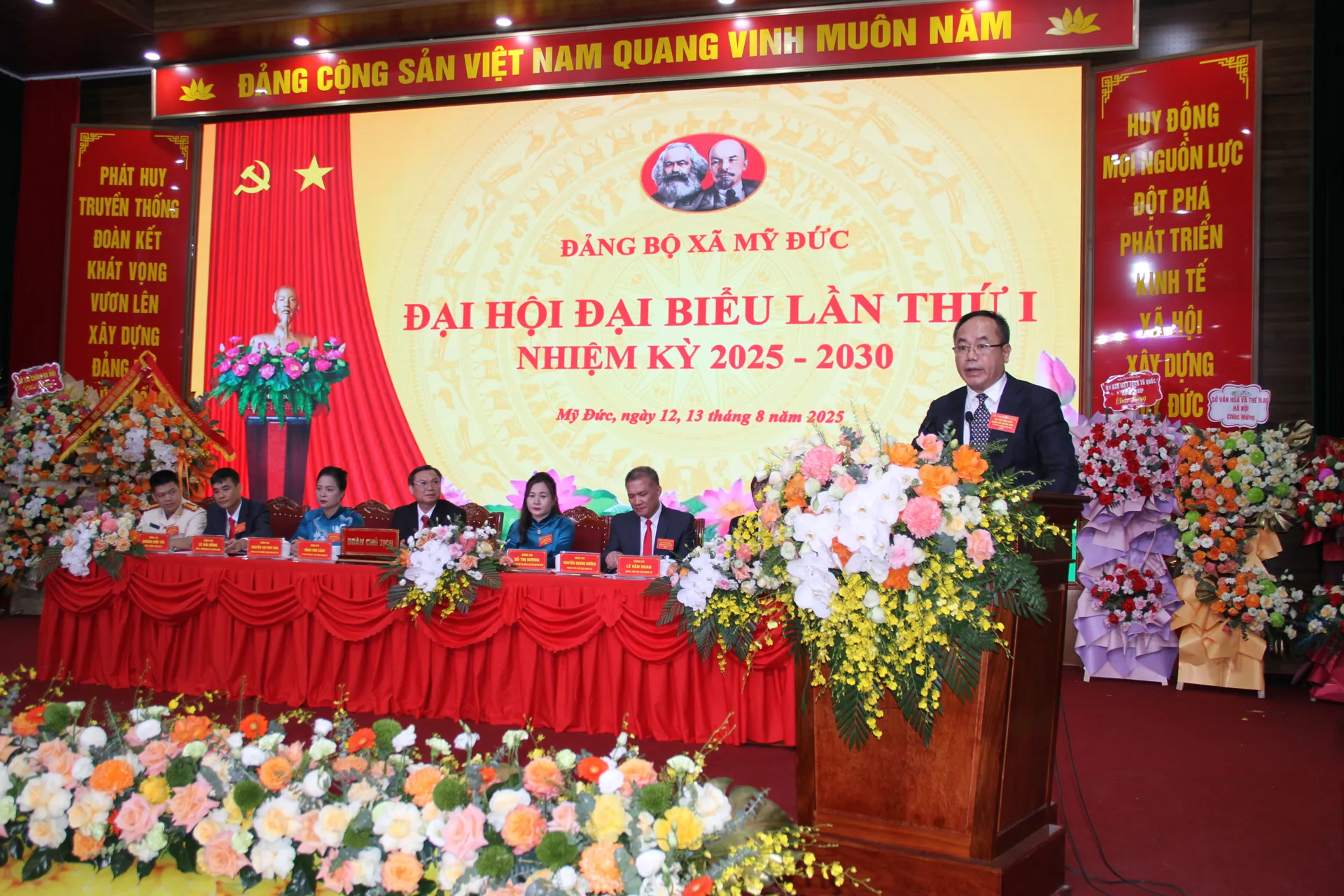 Phát biểu khai mạc Đại hội, Bí thư Đảng ủy, Chủ tịch HĐND xã Mỹ Đức Đặng Văn Cảnh cho biết, Đại hội Đảng bộ xã Mỹ Đức lần thứ I, nhiệm kỳ 2025 - 2030 là sự kiện chính trị đặc biệt quan trọng của cán bộ, đảng viên và nhân dân trong xã. Đại hội có nhiệm vụ kiểm điểm, đánh giá kết quả thực hiện Nghị quyết đại hội nhiệm kỳ 2020 - 2025; quyết định mục tiêu, nhiệm vụ xây dựng và phát triển của xã giai đoạn 2025 - 2030; thảo luận, đóng góp ý kiến vào dự thảo các văn kiện đại hội XVIII Đảng bộ TP Hà Nội và đại hội đại biểu toàn quốc lần thứ XIV của Đảng.