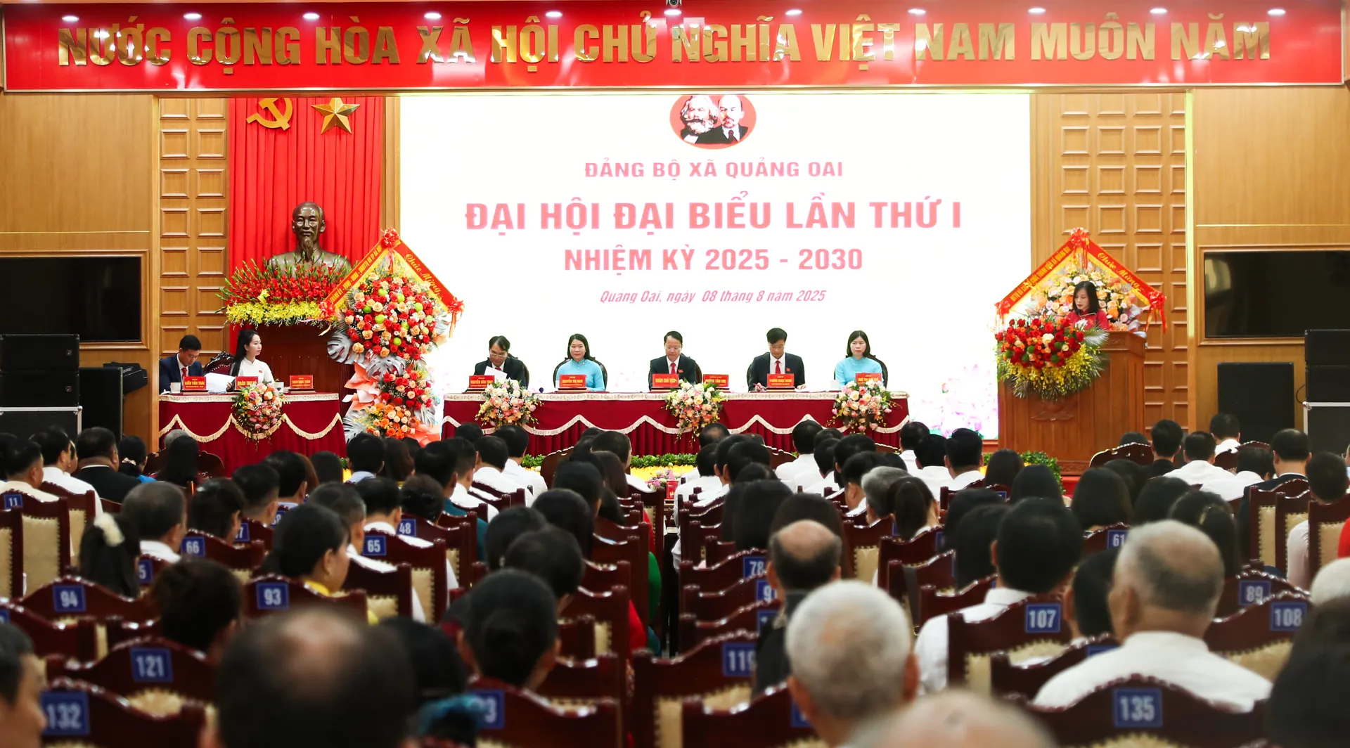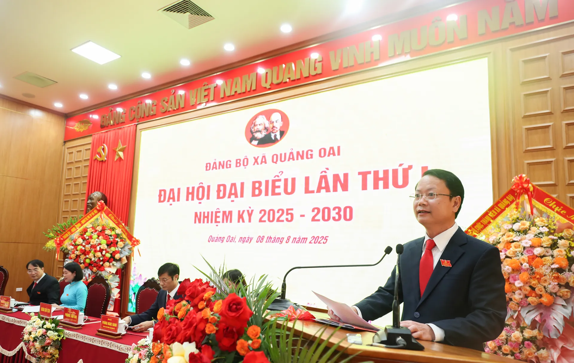 Kinhtedothi - Chiều 8/8, Đảng bộ xã Quảng Oai (TP Hà Nội) tổ chức Đại hội đại biểu lần thứ I, nhiệm kỳ 2025 - 2030. Đại hội đánh dấu bước chuyển mình lịch sử của địa phương mới trên cơ sở sáp nhập toàn bộ diện tích tự nhiên và dân số của các xã: Tiên Phong, Đông Quang, Cam Thượng và phần lớn diện tích và dân số của thị trấn Tây Đằng và các xã: Thụy An, Chu Minh của huyện Ba Vì cũ.