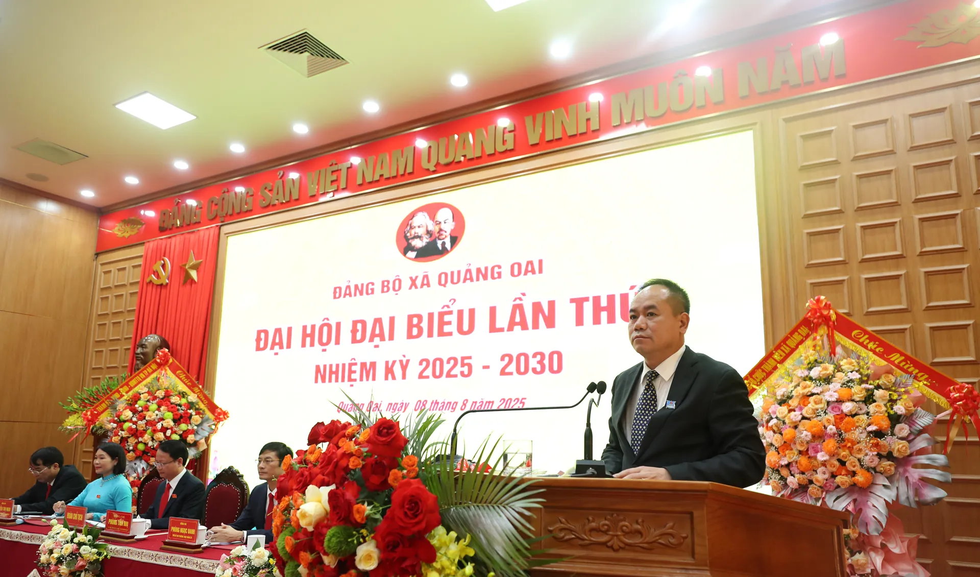 Phát biểu khai mạc Đại hội, Bí thư Đảng ủy, Chủ tịch HĐND xã Quảng Oai Phùng Tân Nhị cho biết, Đại hội đại biểu Đảng bộ xã Quảng Oai lần thứ I, nhiệm kỳ 2025 - 2030 là sự kiện chính trị trọng đại, được tiến hành vào thời điểm Đảng bộ xã Quảng Oai mới được thành lập theo chủ trương của T.Ư và TP về mô hình chính quyền địa phương hai cấp, mở ra một chặng đường phát triển quan trọng.