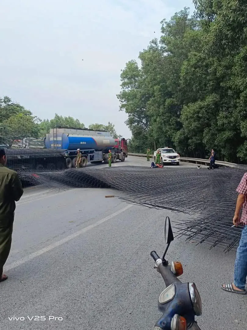 Xe đầu kéo làm rơi lưới thép, 3 người bị thương khi đi qua cầu Thủ Biên