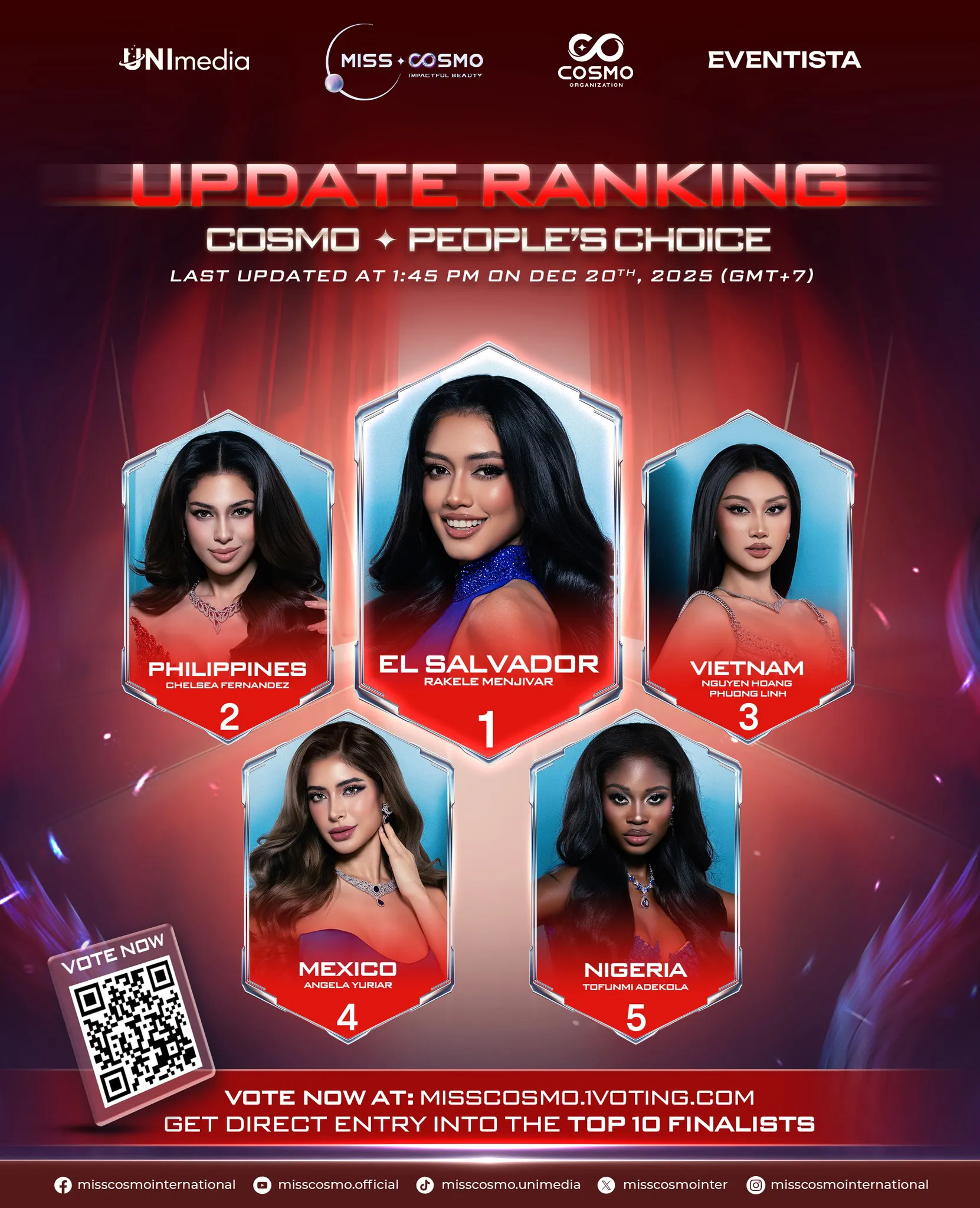 Đại diện Việt Nam năm nay, Nguyễn Hoàng Phương Linh, bước vào Miss Cosmo với tâm thế của một thí sinh chủ nhà nhưng không hề dễ dàng. Giữa dàn đối thủ mạnh, Phương Linh được đánh giá có màn thể hiện tương đối ấn tượng, cho thấy sự tiến bộ qua từng vòng thi.