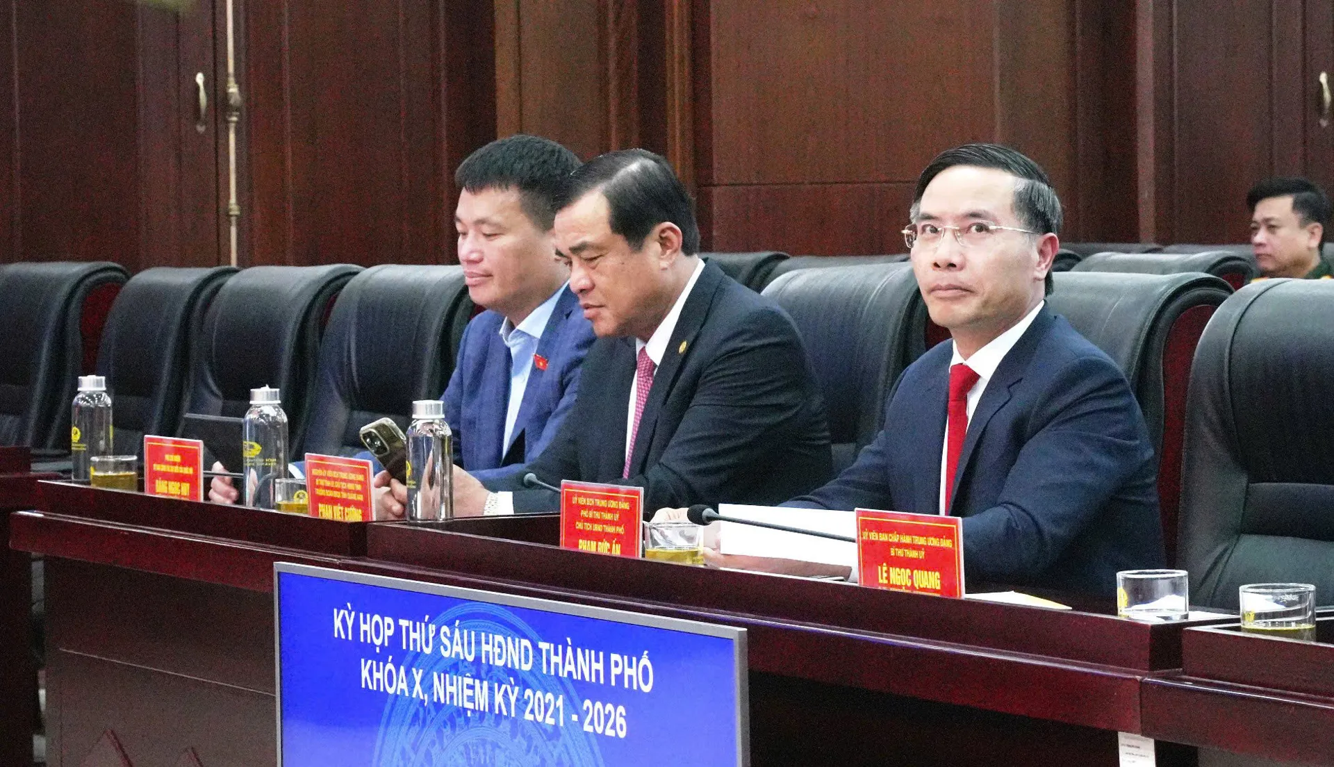 Phó Bí thư Thành ủy, Chủ tịch HĐND thành phố Nguyễn Đức Dũng; Phó Chủ tịch Thường trực HĐND thành phố Trần Phước Sơn cùng các Phó Chủ tịch HĐND thành phố: Trần Xuân Vinh, Đoàn Ngọc Hùng Anh, Nguyễn Công Thanh đồng chủ trì kỳ họp.