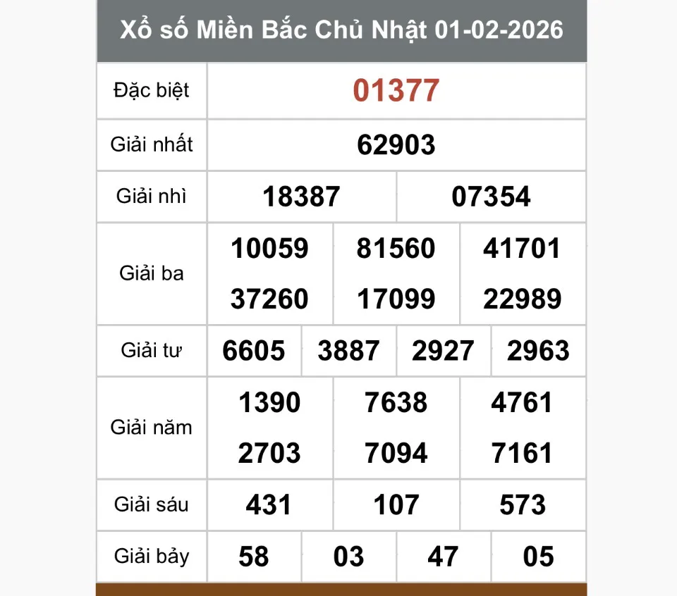 XSMB - Kết quả xổ số miền Bắc hôm nay 1/2/2026 - Trực tiếp XSMB ngày 1 tháng 2