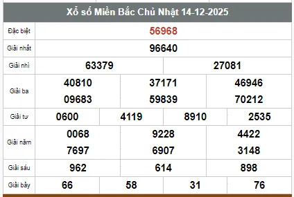 XSMB - Kết qua xổ số miền Bắc hôm nay 15/12/2025 - Trực tiếp XSMB ngày 15 tháng 12