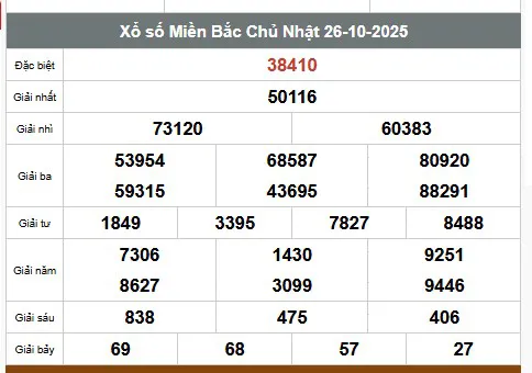 XSMB - Kết qua xổ số miền Bắc hôm nay 26/10/2025 - Trực tiếp XSMB ngày 26 tháng 10