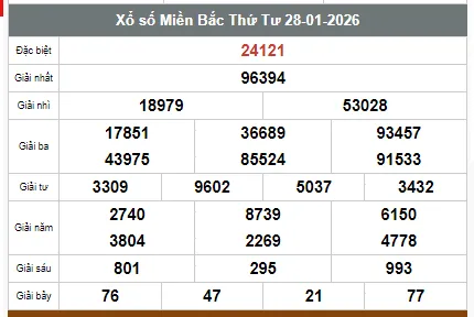 XSMB - Kết quả xổ số miền Bắc hôm nay 29/1/2026 - Trực tiếp XSMB ngày 29 tháng 1