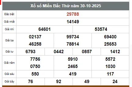 XSMB - Kết qua xổ số miền Bắc hôm nay 30/10/2025 - Trực tiếp XSMB ngày 30 tháng 10