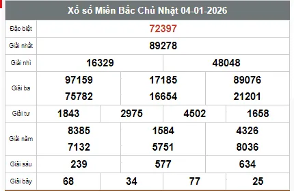 XSMB - Kết quả xổ số miền Bắc hôm nay 5/1/2026 - Trực tiếp XSMB ngày 5 tháng 1