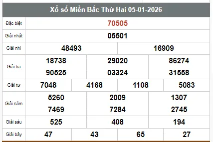 XSMB - Kết quả xổ số miền Bắc hôm nay 6/1/2026 - Trực tiếp XSMB ngày 6 tháng 1