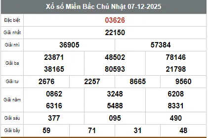 XSMB - Kết qua xổ số miền Bắc hôm nay 7/12/2025 - Trực tiếp XSMB ngày 7 tháng 12