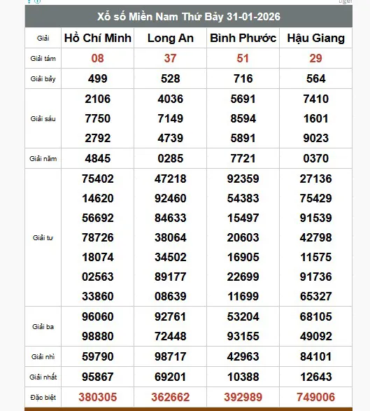 XSMN - Kết quả xổ số miền Nam hôm nay 1/2/2026 - XSMN ngày 1 tháng 2