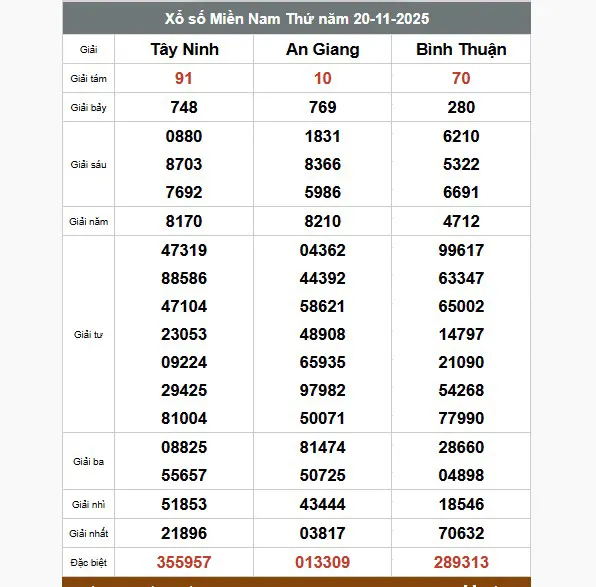 Xổ số miền Nam: Gồm 21 tỉnh khác nhau có thời gian mở thưởng là 16h10 hàng ngày. Theo dõi kết quả XSMN hôm nay ngày 20/11/2025 trên Kinhtedothi.vn