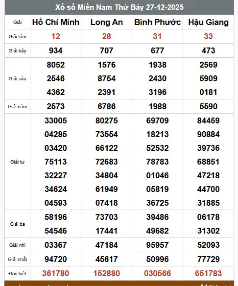 XSMN - Kết quả xổ số miền Nam hôm nay 28/12/2025 - Trực tiếp XSMN ngày 28 tháng 12