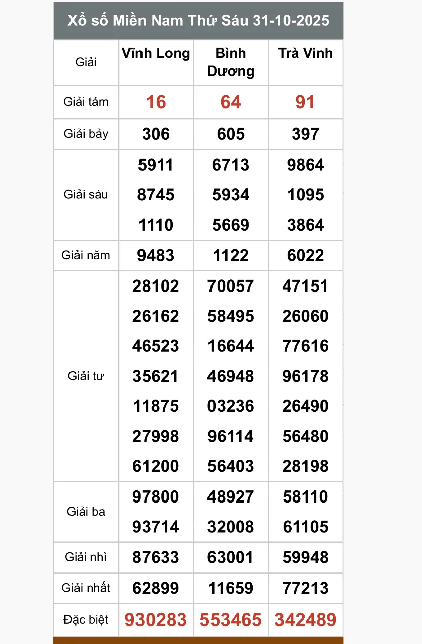 Xổ số miền Nam: Gồm 21 tỉnh khác nhau có thời gian mở thưởng là 16h10 hàng ngày. Theo dõi kết quả XSMN hôm nay ngày 31/10/2025 trên Kinhtedothi.vn