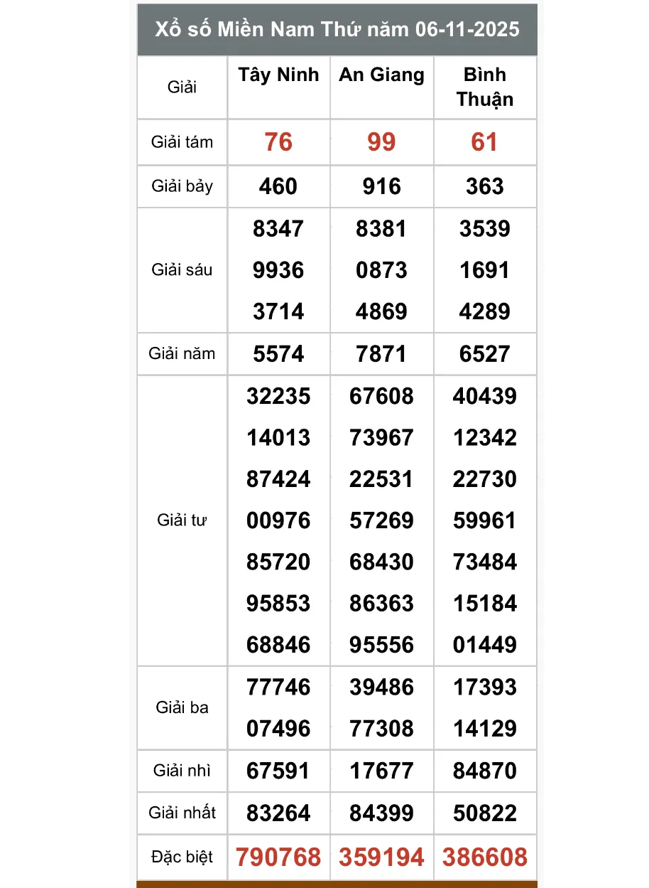 XSMN - Kết quả xổ số miền Nam hôm nay 6/11/2025 - Trực tiếp XSMN ngày 6 tháng 11