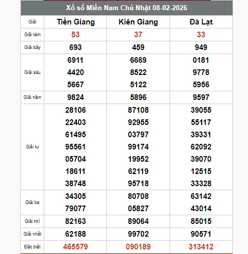 XSMN - Trực tiếp kết quả xổ số miền Nam hôm nay 8/2/2026 - KQXSMN ngày 8 tháng 2