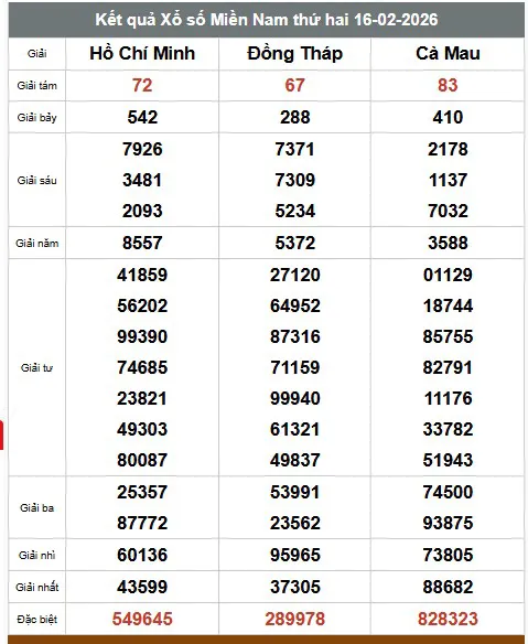 XSMN - Trực tiếp kết quả xổ số miền Nam hôm nay ngày 16 tháng 2 - KQXSMN 16/2/2026