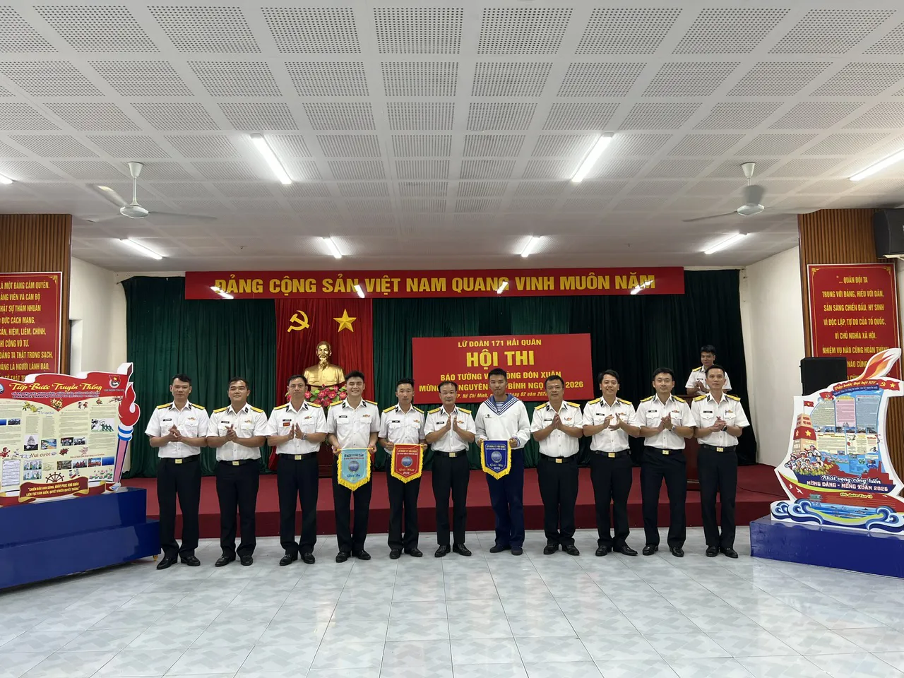 Cùng ngày, tại Lữ đoàn 171 Hải quân cũng tổ chức hội thi báo tường và phòng đón Xuân mừng Tết Nguyên đán Bính Ngọ năm 2026, với sự tham gia của 10 đội thi đến từ các cơ quan, đơn vị trong toàn Lữ đoàn. Thượng tá Trần Văn Tuyến, Chủ nhiệm Chính trị, chủ trì và là trưởng Ban Giám khảo.